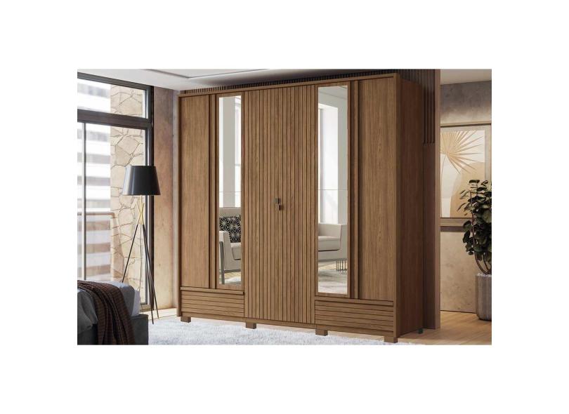 Guarda Roupa Casal 6 Portas E 5 Gavetas C/ Espelho E Pés Democrata Jatoba - Santos Andirá