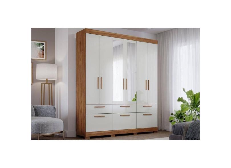 Guarda Roupa Casal 6 Portas e 5 Gavetas c/ Espelho Porto Cinamomo/Off White - Panan