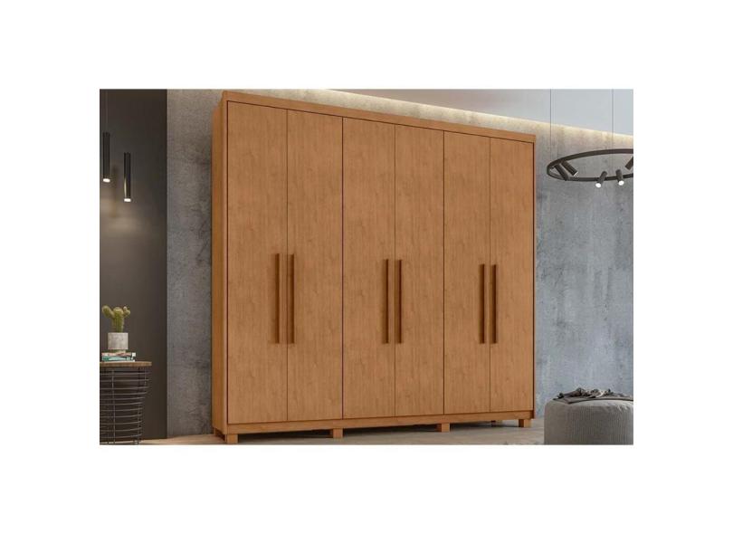 Guarda Roupa Casal 6 Portas e 5 Gavetas c/ Pés Áries Amêndoa - Lopas