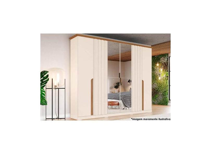 Guarda Roupa Casal 6 Portas E 6 Gavetas C/ Espelho Napoli Off White/Na