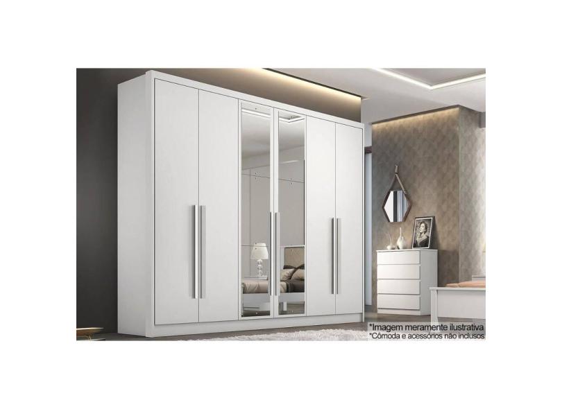 Guarda Roupa Casal 6 Portas e 8 Gavetas c/ Espelho Robust/Livorno Branco - Novo Horizonte