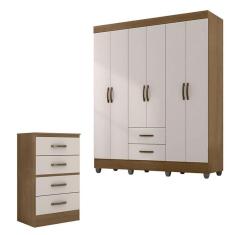 Guarda Roupa Casal 6 Portas E Cômoda 4 Gavetas Lite Nature Off White