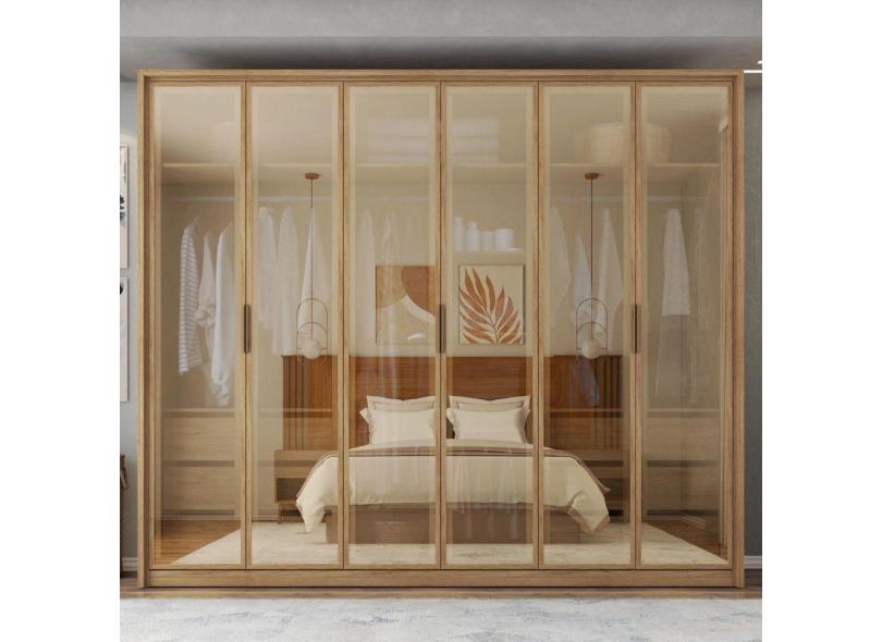 Guarda Roupa Casal 6 Portas Espelho 4 Gavetas Marrom Reflex
