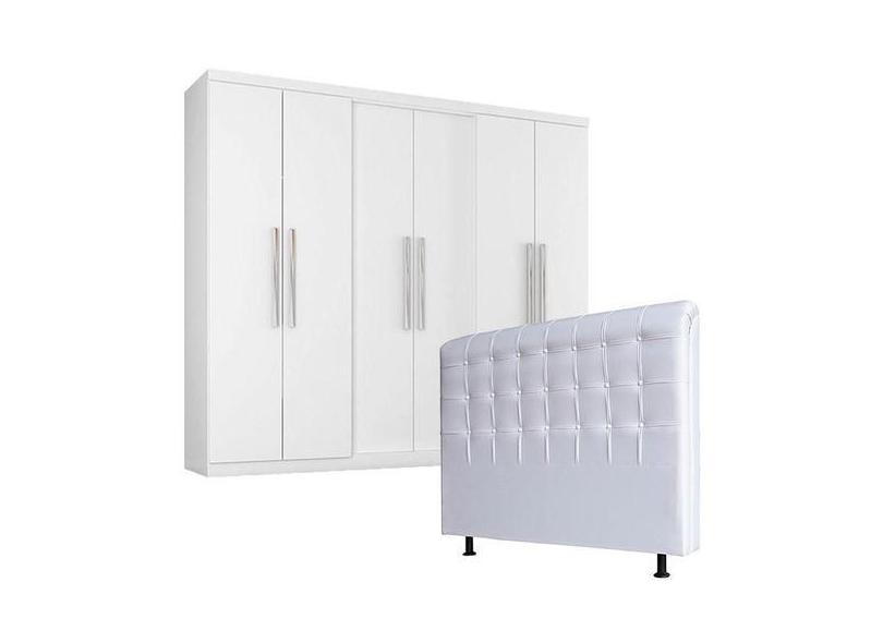 Guarda Roupa Casal 6000 E Cabeceira Ana 195 Cm Branco - Araplac