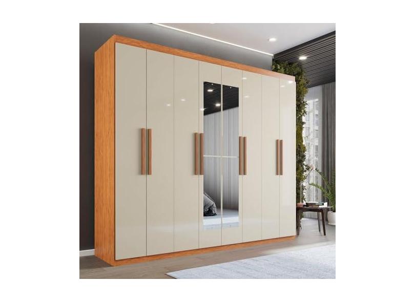 Guarda-roupa Casal 8 Portas 4 Gavetas com Espelho Montreal Cinamomo/Off-White
