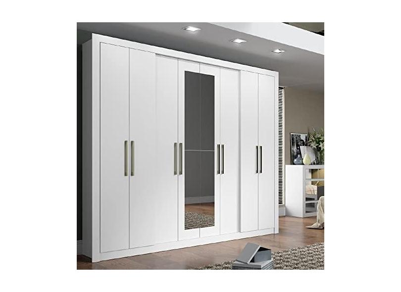 Guarda Roupa Casal 8 Portas 4 Gavetas Espelho 1096 Carraro - Branco