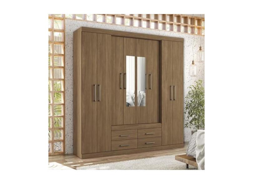 Guarda-roupa Casal 8 Portas 4 Gavetas Nápoles com Espelhos Jatoba