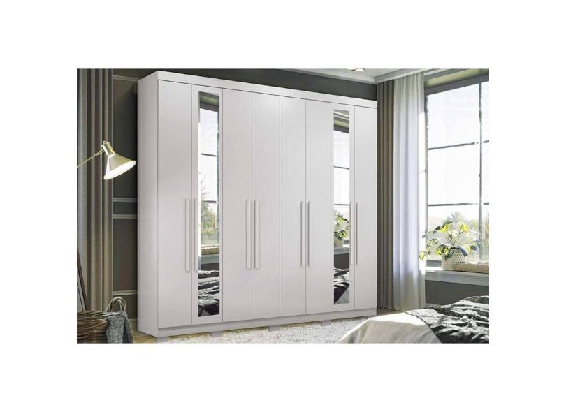 Guarda Roupa Casal 8 Portas e 4 Gavetas c/Espelho e Pés Master New 8.4 Branco - Santos Andirá