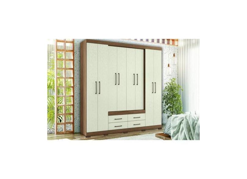 Guarda Roupa Casal 8 Portas E 4 Gavetas C/ Pés Nápoles Jatoba/Areia -