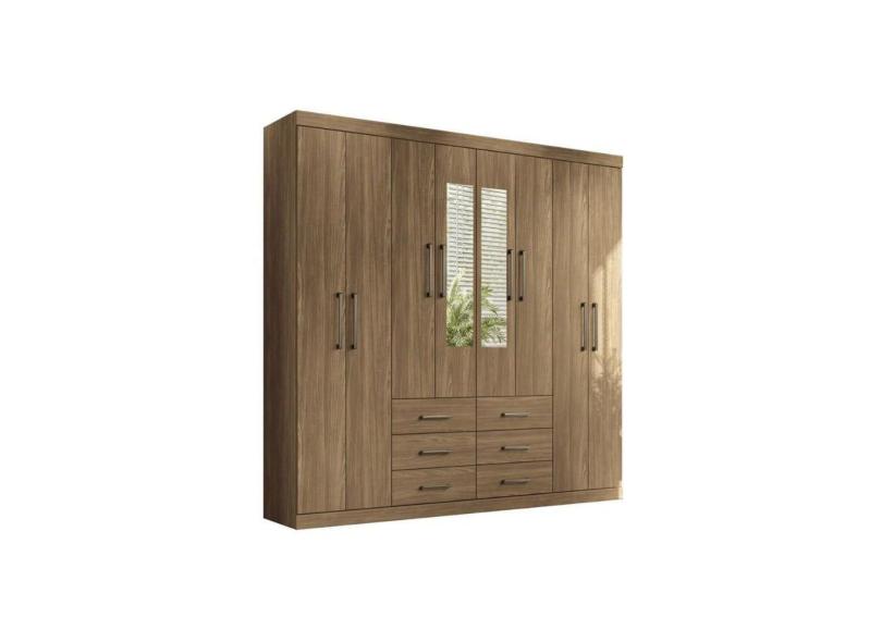 Guarda Roupa Casal 8 Portas e 6 Gavetas c/ Espelho Liverpool Jatoba/Ebano - Santos Andirá