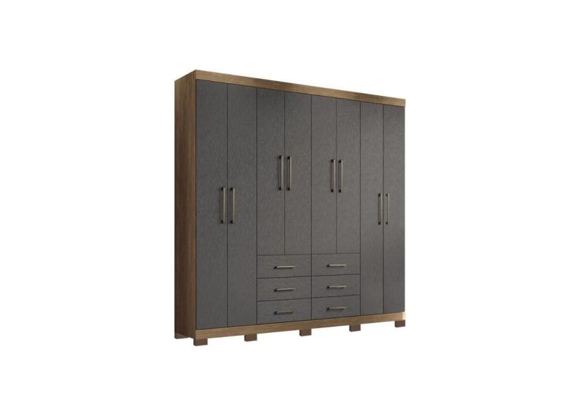 Guarda Roupa Casal 8 Portas e 6 Gavetas c/ Pés Liverpool Jatoba/Grafitte - Santos Andirá