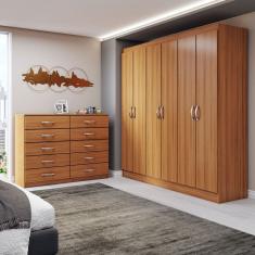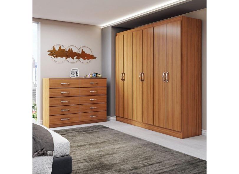 Guarda-Roupa Casal Aiden 6 Portas 2 Gavetas com Cômoda 10 Gavetas Cinamomo - Panorama Móveis