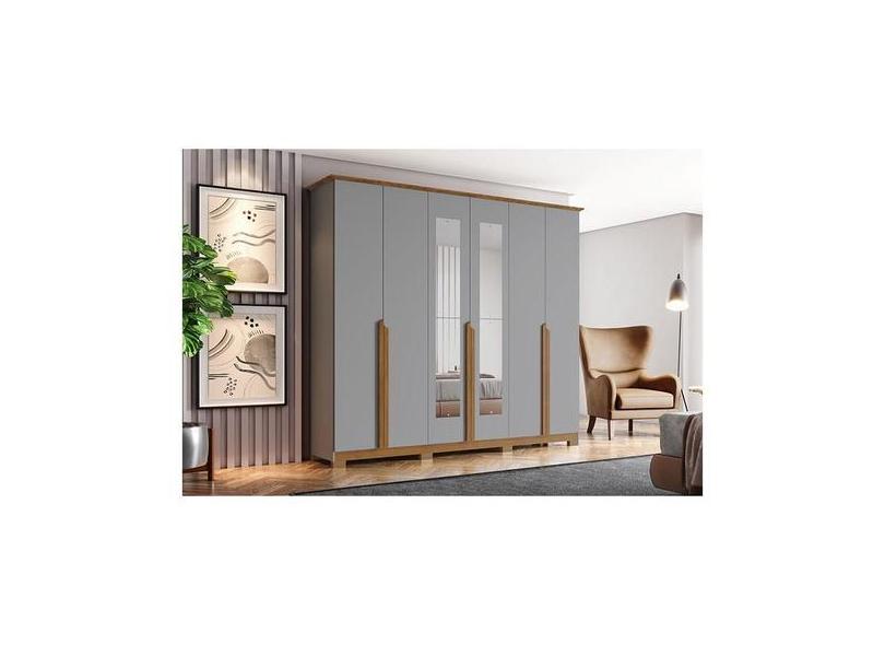 Guarda Roupa Casal Ambiente Andréas 6 Portas Cinza Nature Com Espelho