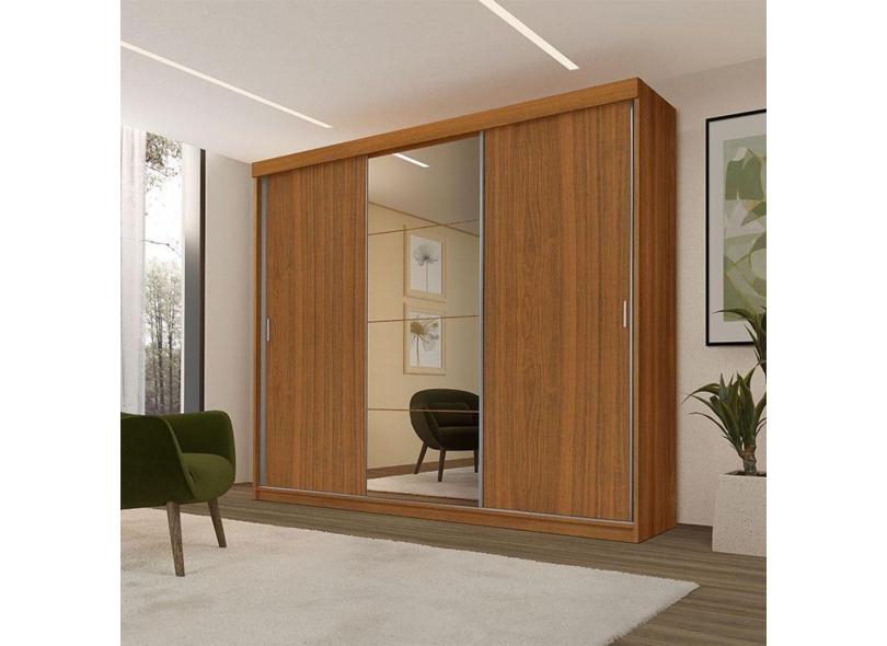 Guarda Roupa Casal Ambiente Ímola 3 Portas de Correr com Espelho Carvalho New - Luapa