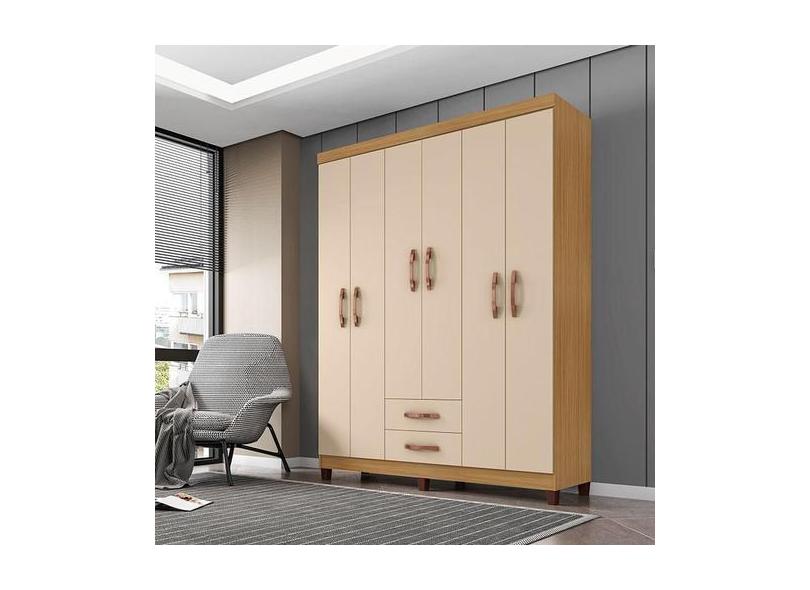 Guarda Roupa Casal Ambiente Modena 6 Portas Carvalho Americano Off Whi