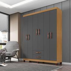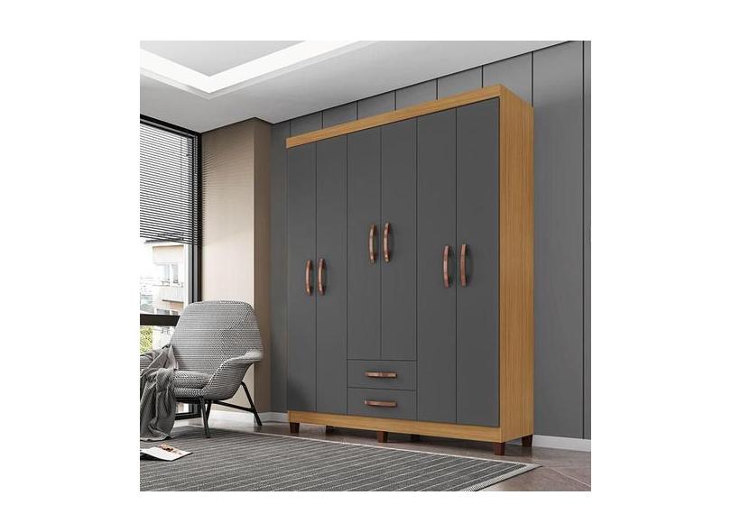 Guarda Roupa Casal Ambiente Mogi 6 Portas Carvalho Americano Grafite -