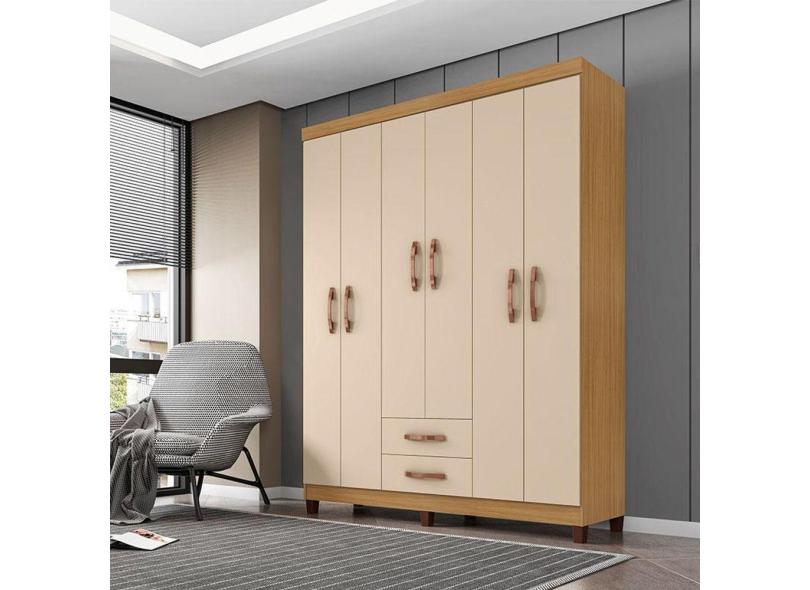 Guarda Roupa Casal Ambiente Mogi 6 Portas Carvalho Americano Off White - Incorplac