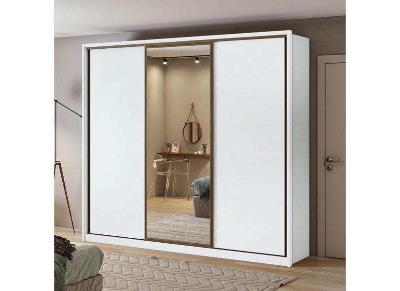 Guarda Roupa Casal Ambiente Spazio 270 Branco Brilho com Espelho - Lopas