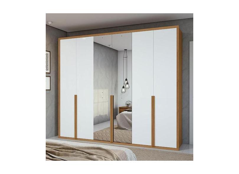 Guarda Roupa Casal Ambiente Unique Amêndoa Clean Branco Com Espelho -