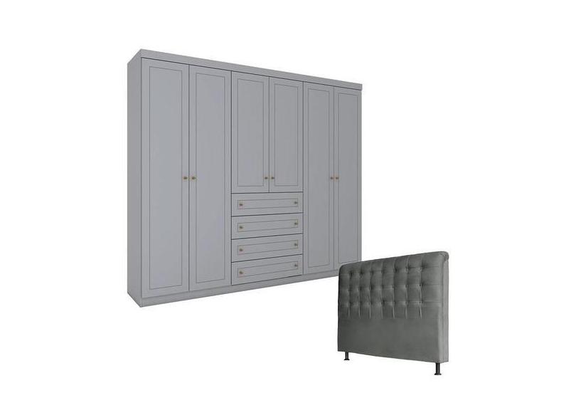 Guarda Roupa Casal Americano Com Cabeceira Ana 195 Cm Cinza Henn