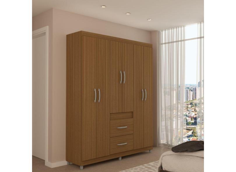 Guarda-Roupa Casal Apolo 6 Portas 2 Gavetas Castanho - Pnr Móveis