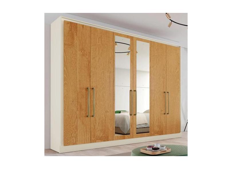 Guarda-Roupa Casal Argos 6 Portas 6 Gavetas Espelhado 100% Mdf Off Whi