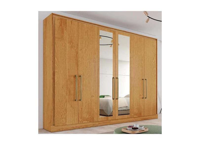 Guarda-Roupa Casal Argos 6 Portas 6 Gavetas Espelhado 100% Mdf Peroba