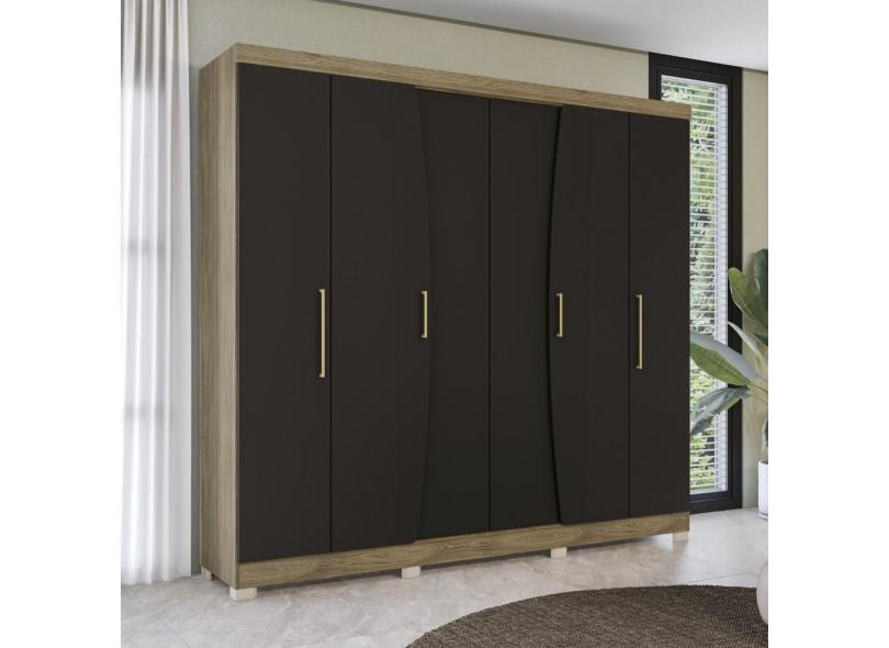 O menor preço encontrado no Brasil para Guarda Roupa Casal Armário Roupeiro 240 cm 6 Portas 3 Gavetas 9 Prateleiras Quarto Marrom e Preto atualmente é R$ 1.689,90.