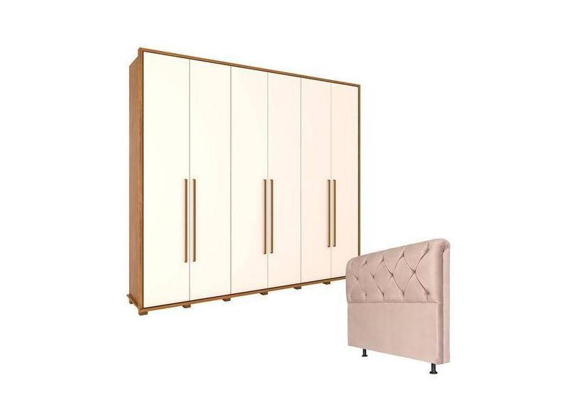 Guarda Roupa Casal Atalaia Nature Off White Com Cabeceira Daiana 160 C