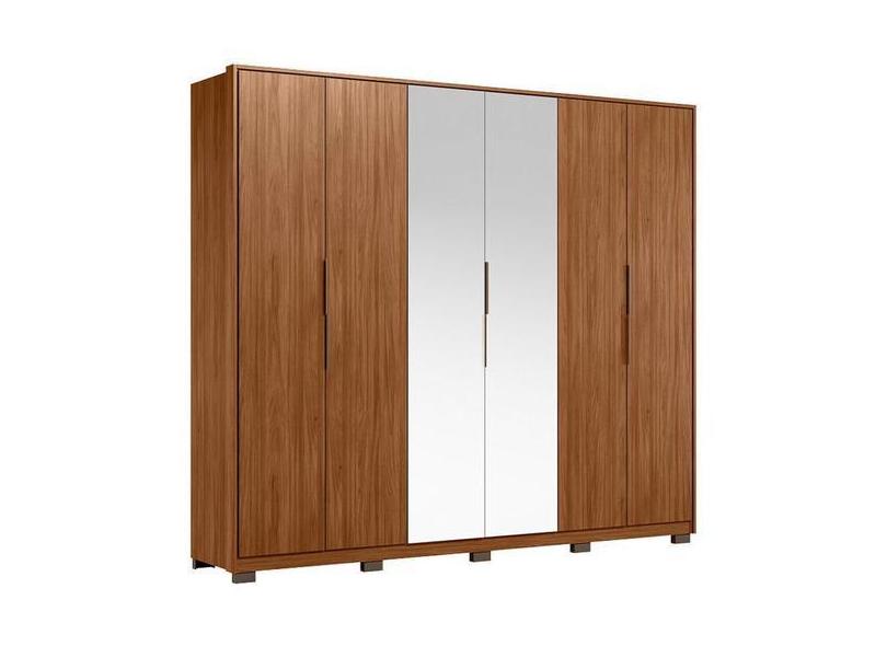 Guarda Roupa Casal Atrice 6 Portas Nogueira Touch Com Espelho E Pés De