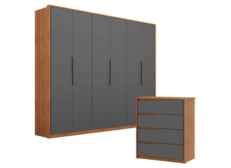 Guarda Roupa Casal Atrice e Cômoda Atria Amêndola Grafito - Demartêz