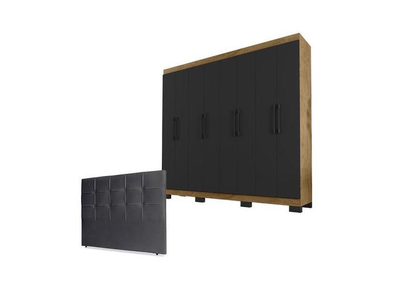 Guarda Roupa Casal B2348 Freijó Carbono E Cabeceira Luiza 160 Cm Cinza