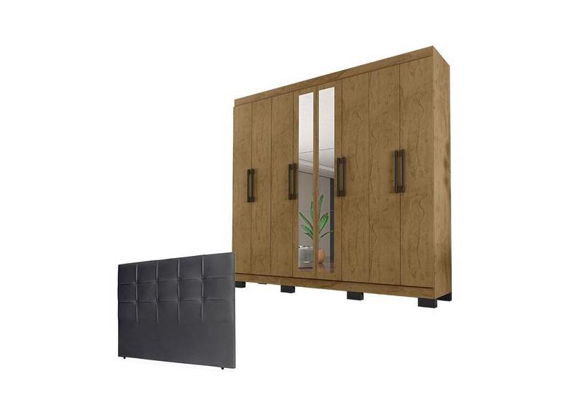 Guarda Roupa Casal B2348 Freijó Com Espelho E Cabeceira Luiza 160 Cm C