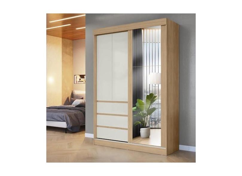 Guarda-roupa Casal Bagda 3 Portas 3 Gavetas com Espelho Castanho/off White