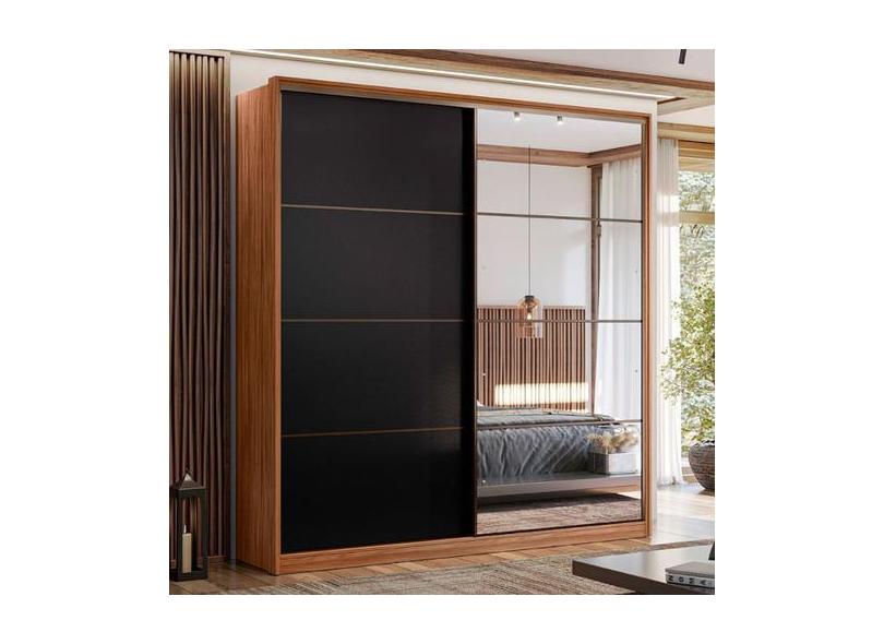 Guarda-Roupa Casal Belga 2 Portas 3 Gavetas com Espelho Nogueira Touch