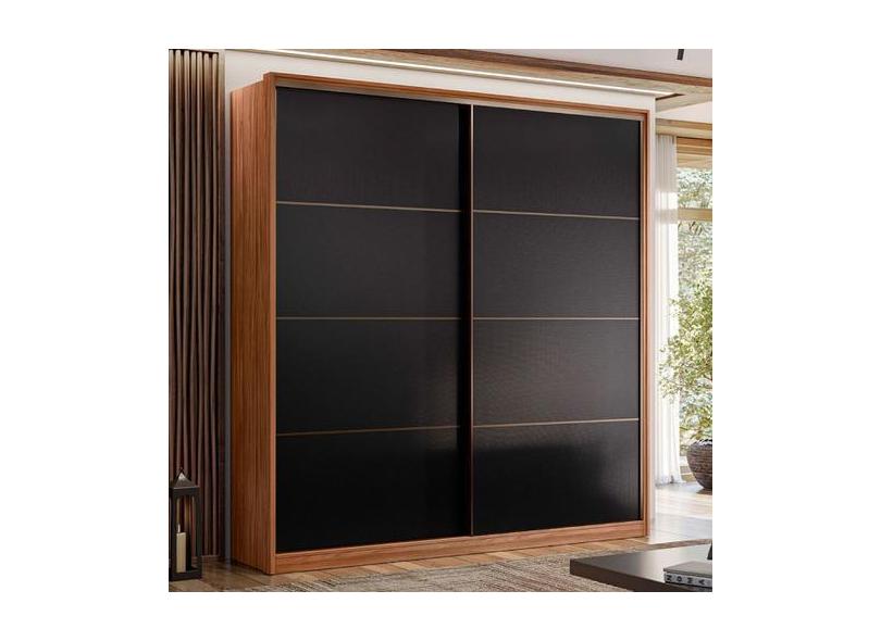 Guarda-Roupa Casal Belga 2 Portas 3 Gavetas Nogueira Touch/Preto Prime