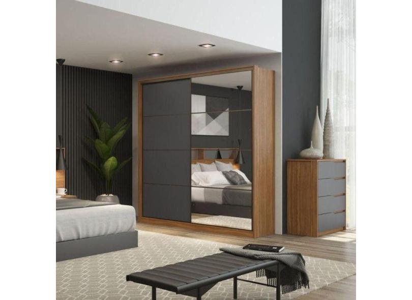 Guarda Roupa Casal Belga 2 Portas C/ 1 Porta Em Espelho Amendola/grafito - Demartez