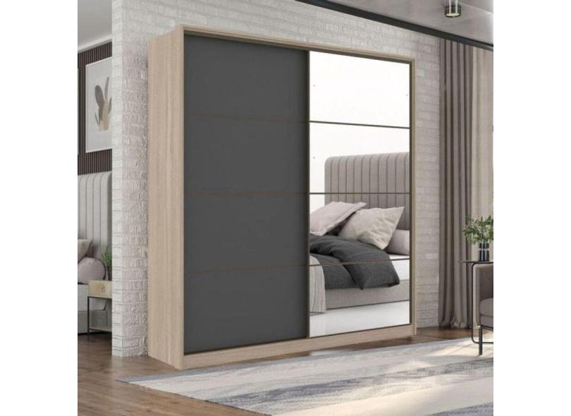Guarda Roupa Casal Belga 2 Portas c/ 1 Porta Em Espelho Avena/grafito - Demartez