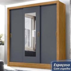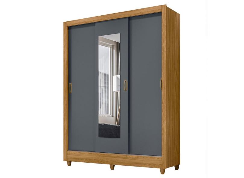 Guarda Roupa Casal Bolívia 3 Portas Deslizantes Freijó/Cinza Com Espelho - Moval