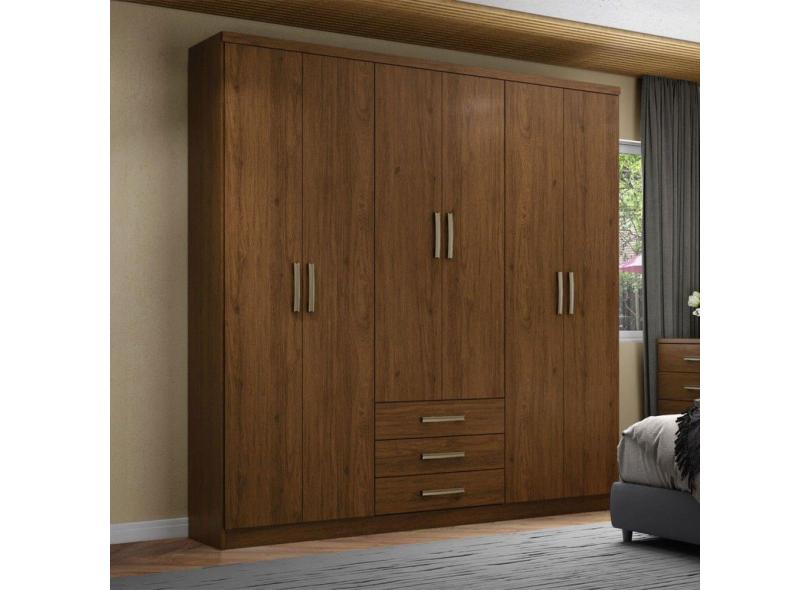 Guarda-Roupa Casal Caju 6 Portas 3 Gavetas Castanho - Henn