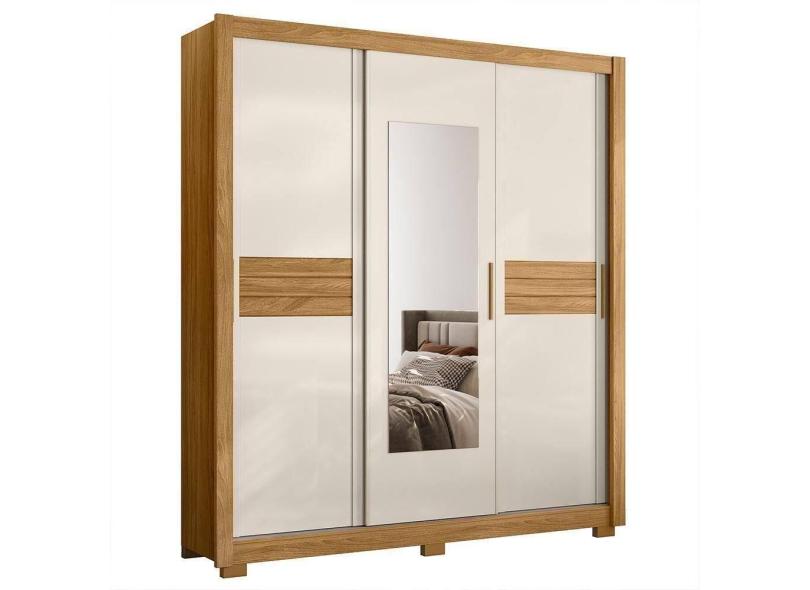 Guarda Roupa Casal Canadá 3 Portas Deslizantes Freijó Off White Com Espelho - Moval Freijó Off White