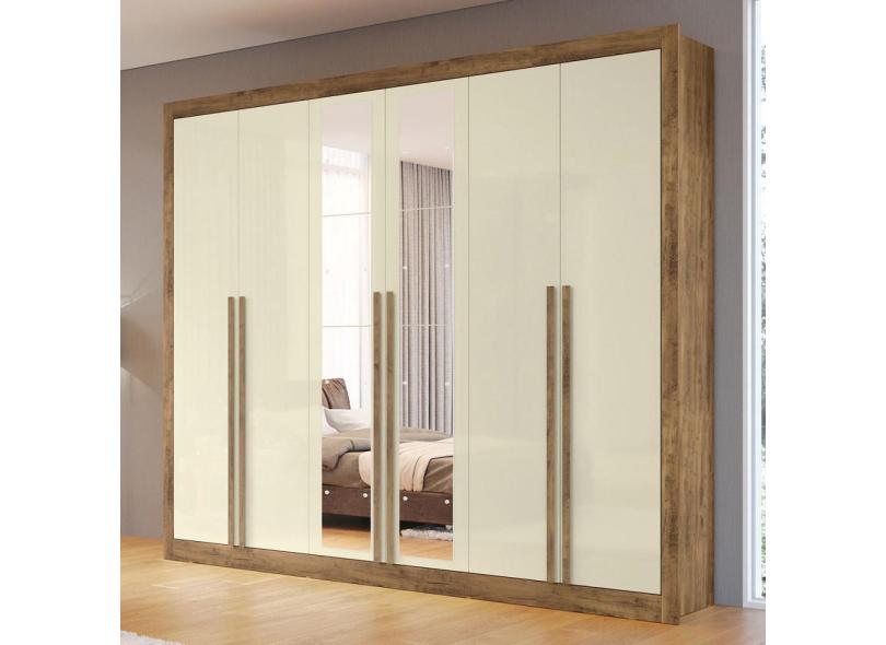 Guarda-Roupa Casal Cannes 6 Portas 6 Gavetas com Espelho Ipê/Off White - Maxel
