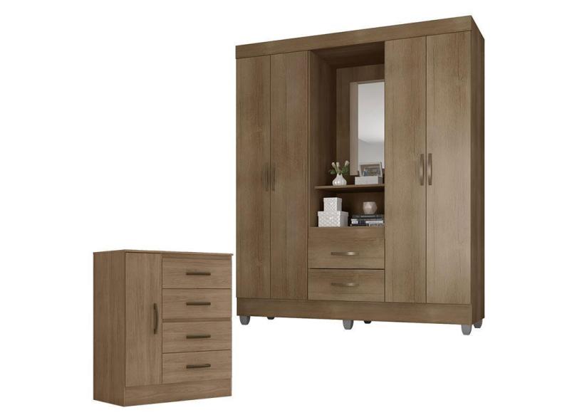 Guarda Roupa Casal Capela e Cômoda 4 Gavetas 01 Porta Lite Carvalho Oak – Móveis Leão