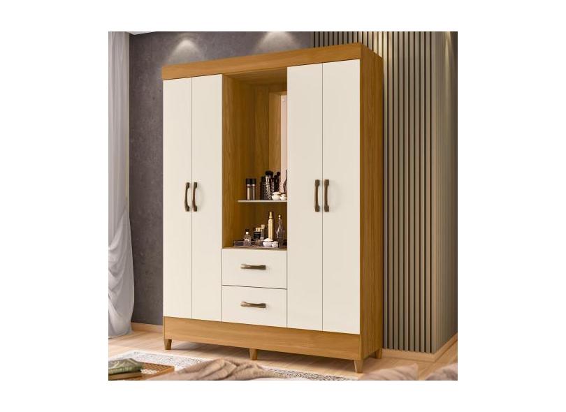 Guarda Roupa Casal Capela Mobi Para Quarto Com Espelho 4 Portas 2 Gave