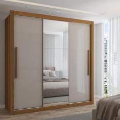 Guarda-Roupa Casal Cardiff 3 Portas 4 Gavetas Com Espelho Cinamomo/Off