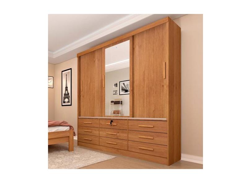 O menor preço encontrado no Brasil para Guarda-Roupa Casal Chicago 3 Portas 9 Gavetas Com Espelho Cinamomo - T atualmente é R$ 1.538,90.