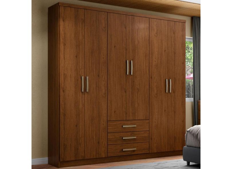 Guarda-roupa Casal City 6 Portas 3 Gavetas Castanho Hp - Henn