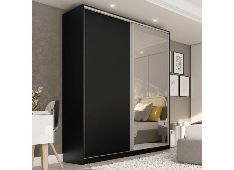 Guarda-Roupa Casal com 1 Espelho Belluno 2 PT 3 GV Preto