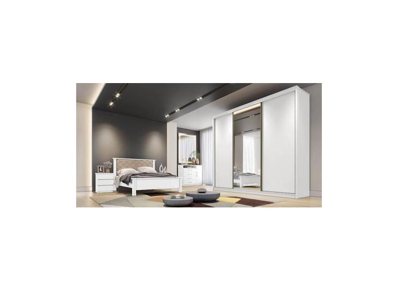 Guarda Roupa Casal Com 1 Porta Espelhada 4 Gavetas - Londres-Branco -