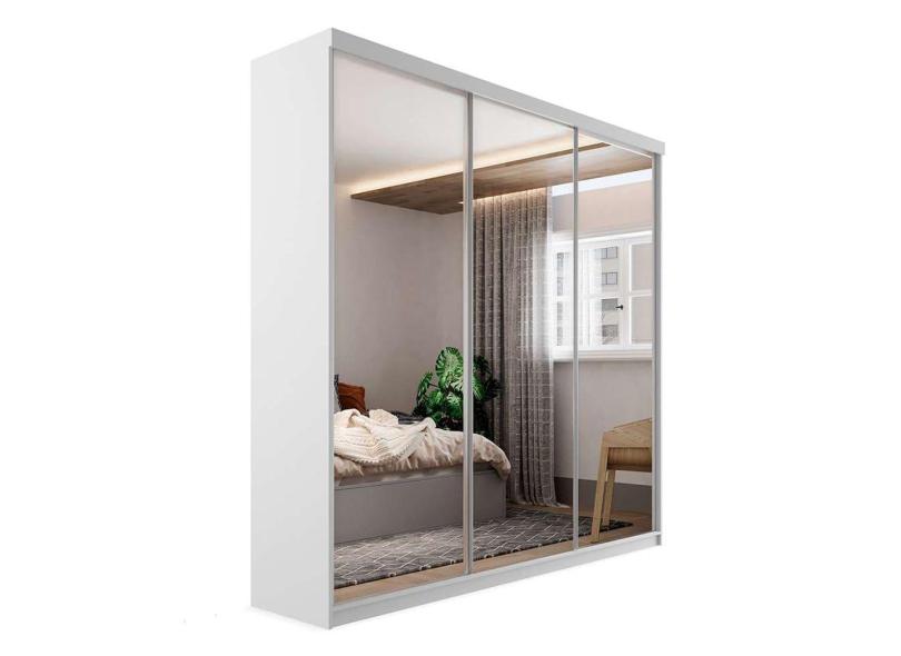O menor preço encontrado no Brasil para guarda-roupa casal com 3 espelhos geneve 3 pt 4 gv branco atualmente é R$ 3.031,04.